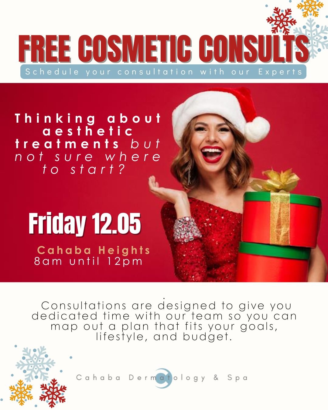 Schedule your consultation on December 5th to help you decide what’s right for you, we’re offering complimentary aesthetic consultations designed to give dedicated time with our team so you can make out a plan that fits your goals, lifestyle, and budget.